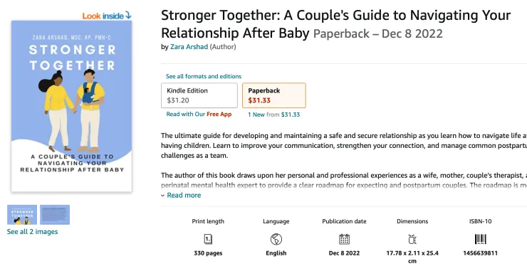 In this book, I draw upon my personal and professional experiences as a wife, mother, couple’s therapist, and perinatal mental health expert to provide a clear roadmap for expecting and postpartum couples. The roadmap is meant to empower couples and new parents to feel more prepared in managing challenges which commonly begin in the fourth trimester and can continue on for years – unless resolved. Readers will find this resource insightful and inspiring because it provides a model for developing a healthy relationship. Readers will also feel encouraged to engage in meaningful conversations with their significant other by gaining knowledge and tools that are readily applicable.